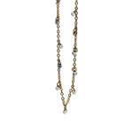 This short necklace is made with PVD-gold-plated stainless steel and glass beads.