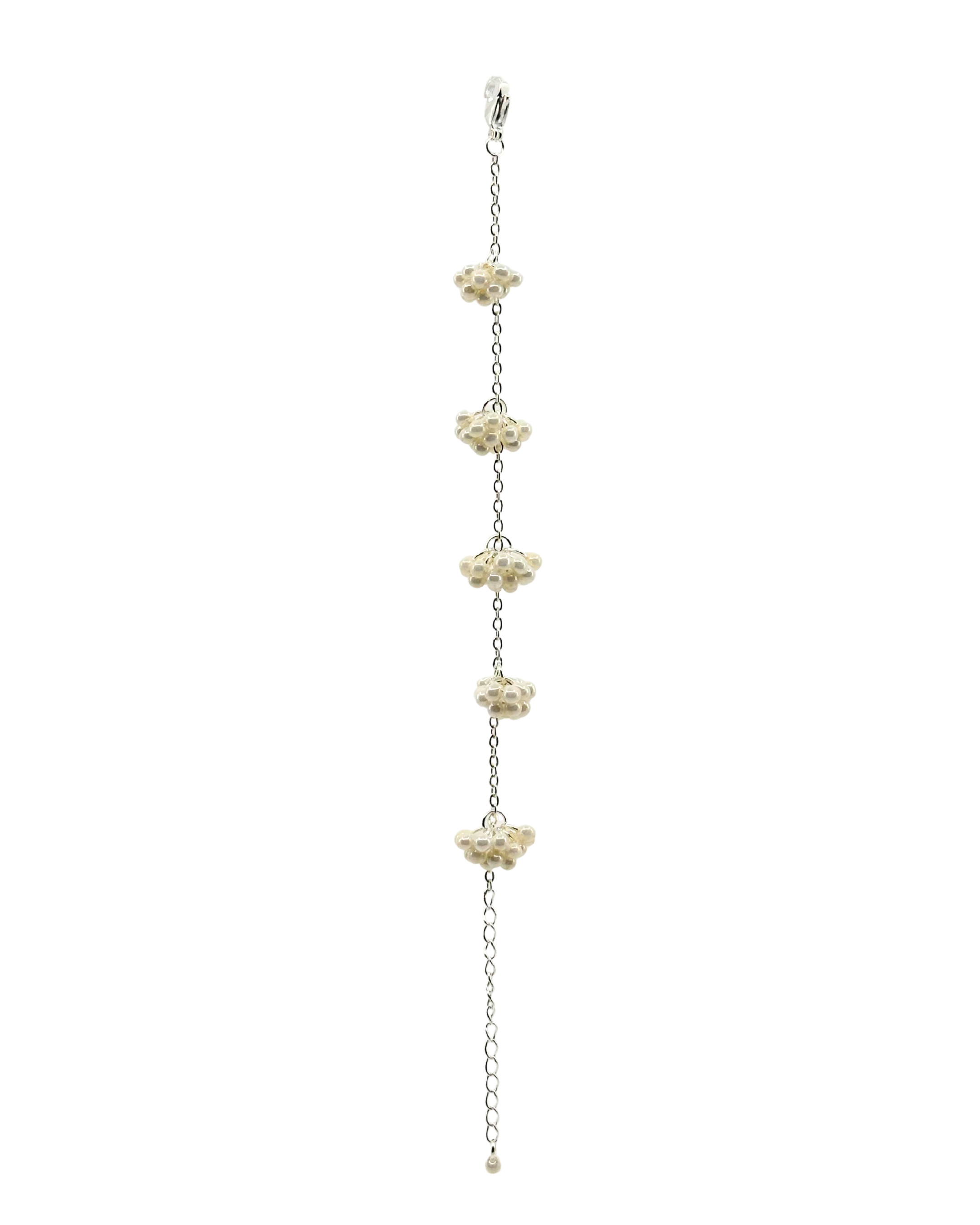 This bracelet is made with silver plated stainless steel and glass beads.